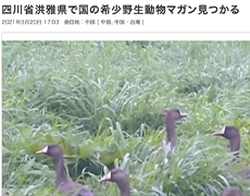 四川省洪雅県で国の希少野生動物マガン見つかる