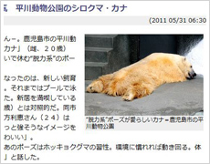 『"脱力系"ポーズで人気 平川動物公園のシロクマ・カナ』