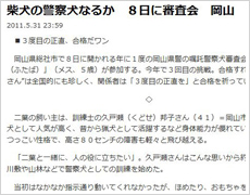 『柴犬の警察犬なるか 8日に審査会 岡山』