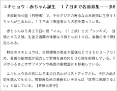 『ユキヒョウ:赤ちゃん誕生 17日まで名前募集--多摩動物公園 /東京』