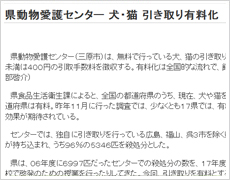 『県動物愛護センター 犬・猫 引き取り有料化』