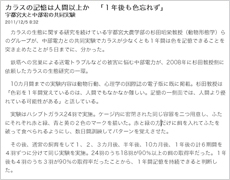 『カラスの記憶は人間以上か 「1年後も色忘れず」』 -