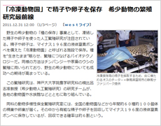 『「冷凍動物園」で精子や卵子を保存 希少動物の繁殖研究最前線』 -