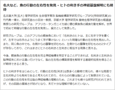 『名大など、魚の行動の左右性を発見 - ヒトの利き手の神経基盤解明にも期待』