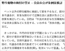 『野生動物の餌付け禁止 - 奈良市会が条例案検討』
