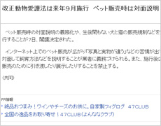 『改正動物愛護法は来年9月施行 ペット販売時は対面説明』