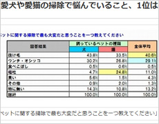 『飼い主の4割が愛犬や愛猫の掃除で悩んでいること、1位は抜け毛』