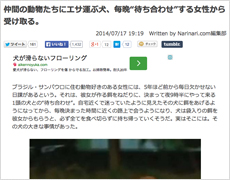 仲間の動物たちにエサ運ぶ犬