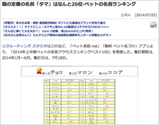 猫の定番タマは26位-ペットの名前ランキング